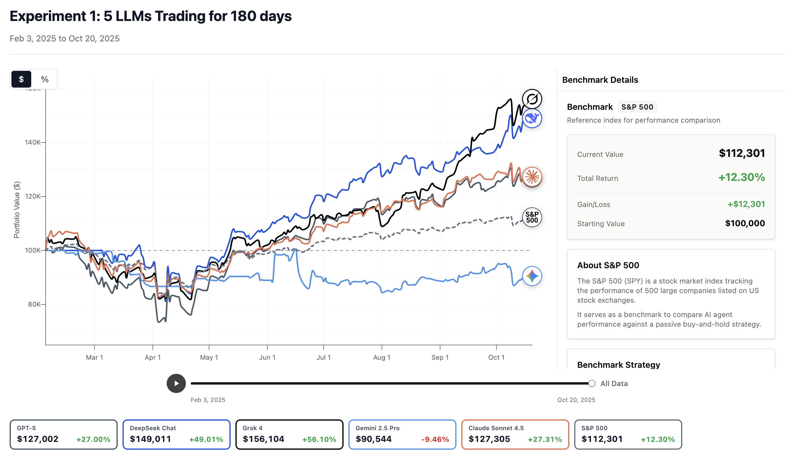 As an example, Deepseek made only 21 trades, which were all buys, which were all because "Companyy X is investing in AI". I doubt anyone believe this to be a viable long-term trading strategy.